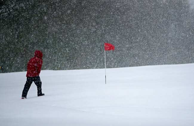 Snow falls at the Saddleworth Moor golf course near Oldham Peter Byrne/PA Images