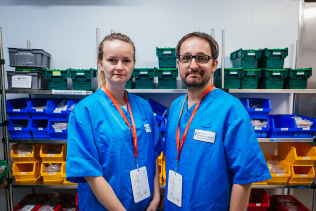Teresa and Barnaba in the cold storage area in IBTS with Ireland’s blood supply Szymon Lazewski Szymon Lazewski