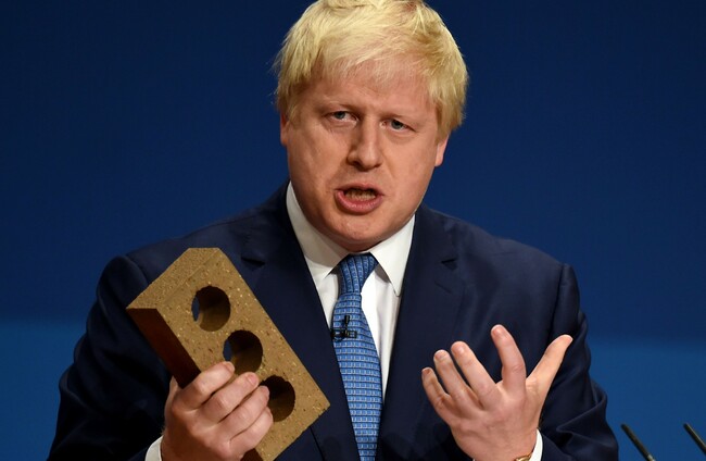 Boris Johnson holds a brick during a 2014 speech Joe Giddens