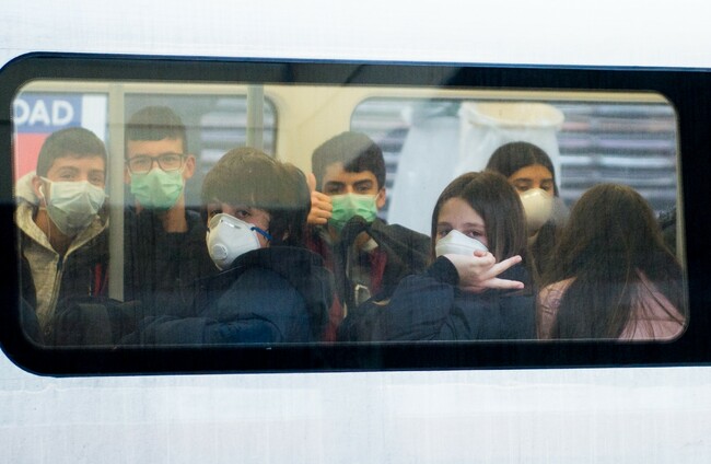 Teenagers wearing face masks on the London Underground (file photo) RMV via ZUMA Press/PA Images