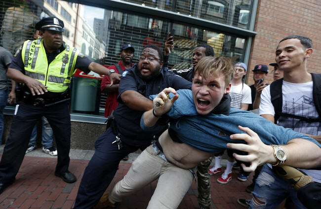 Race Rallies Boston Police try to calm an injured man who was assaulted while arguing with counter-protesters. Michael Dwyer / PA Michael Dwyer / PA / PA