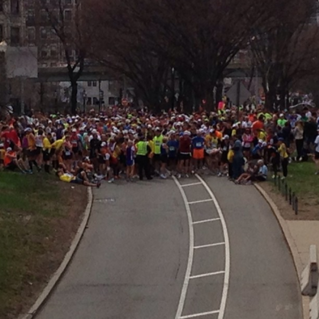 ABC News tweeted this picture of entrants being stopped as news of the explosion filtered through