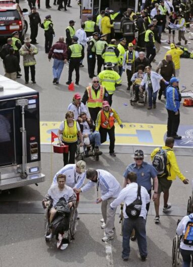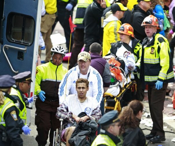 THE TWIN EXPLOSIONS which rocked the finish line of the Boston Marathon caused devastation and chaos as emergency services rushed to aid those caught up in the blast.