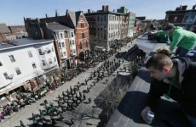 People watch the St Patrick's Day parade from a rooftop in Boston yesterday AP Photo/Michael Dwyer