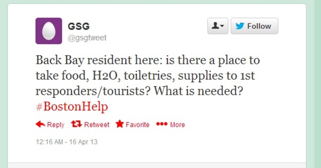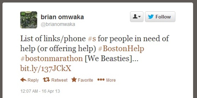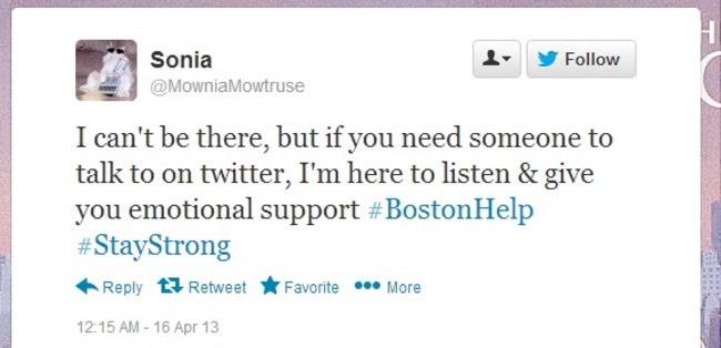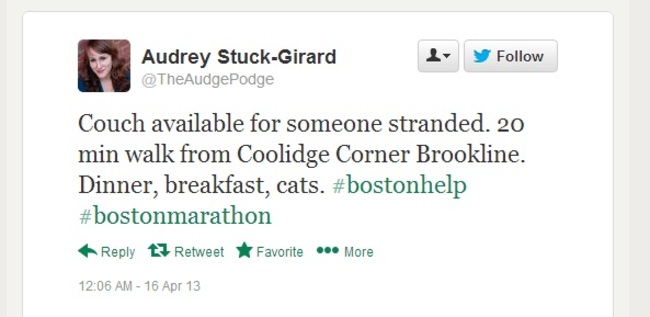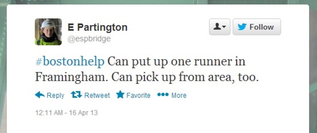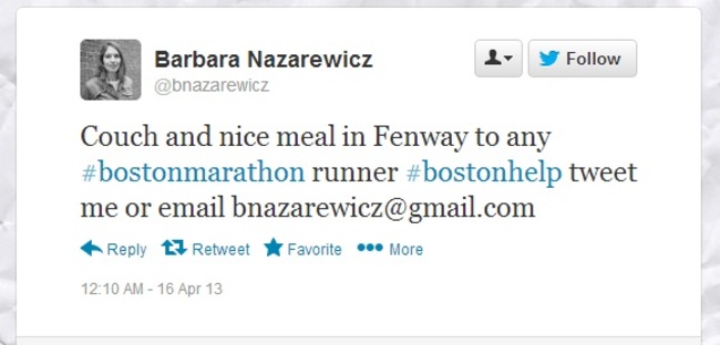 TWITTER USERS HAVE been offering support to runners and others who might be in need in the city of Boston after the devastating explosions there, under the hashtag #BostonHelp.