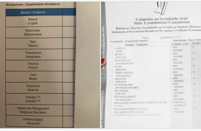 Botún 'códala' a thug ísliú céime don Ghaeilge ar phaipéar thorthaí an Teastais Shóisearaigh