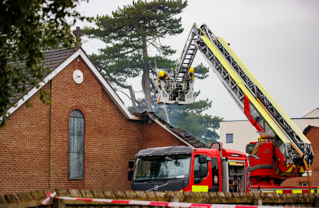 Firefighters at the Church of the Holy Name in Greenisland, Co Antrim. Alamy Stock Photo