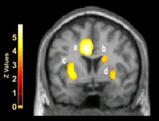 • The second region was the right orbitofrontal cortex, which might be related to emotional and motivational phenomena.