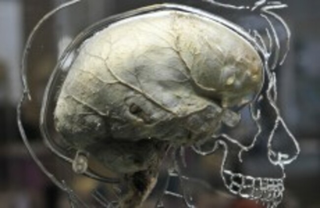 A real human brain suspended in liquid with a to-scale skeleton, central nervous system and human silhouette carved into acrylic, inside the @Bristol science attraction Ben Birchall/PA Archive/Press Association Images