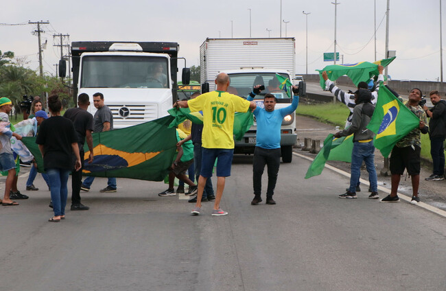A group of Jair Bolsonaro supporters close a section of the Washington Luiz Highway, in front of the Duque de Caxias Refinery.