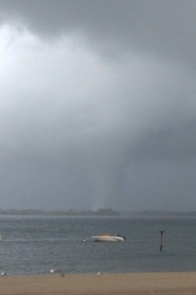 Lizann Maher, a worker at Kennedy’s Restaurant at the edge of Jamaica Bay, said she saw a “swirling cone kind of thing with something flying in it” come down and then head back out into the water toward Brooklyn.