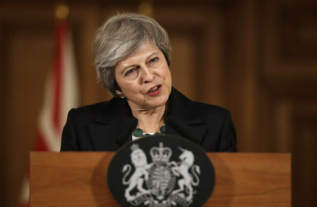 Her comments today are aimed at tamping down the hardline Conservative Party revolt led by the likes of her former foreign minister Boris Johnson.