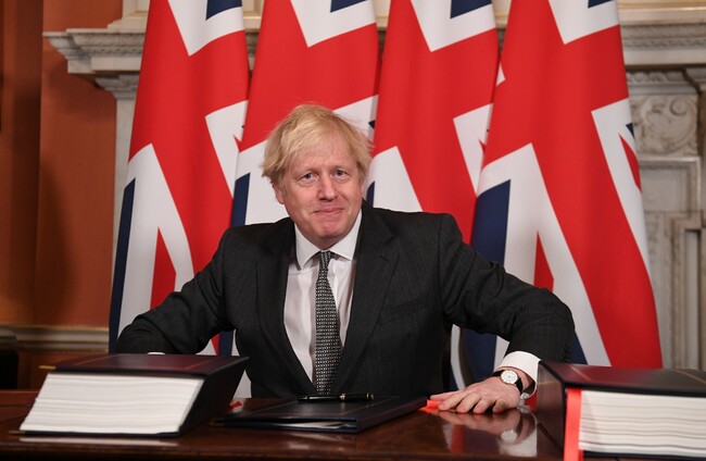 Prime Minister Boris Johnson signs the EU-UK Trade and Cooperation Agreement at 10 Downing Street, Westminster Leon Neal via PA Images