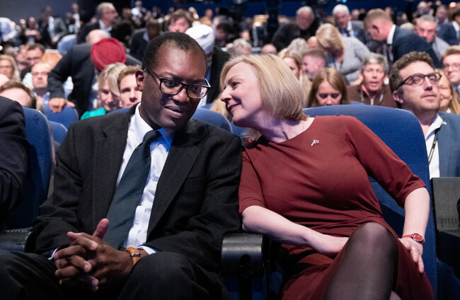 British Chancellor Kwasi Kwarteng, and Prime Minister Liz Truss at the start of the Conservative Party annual conference. PA