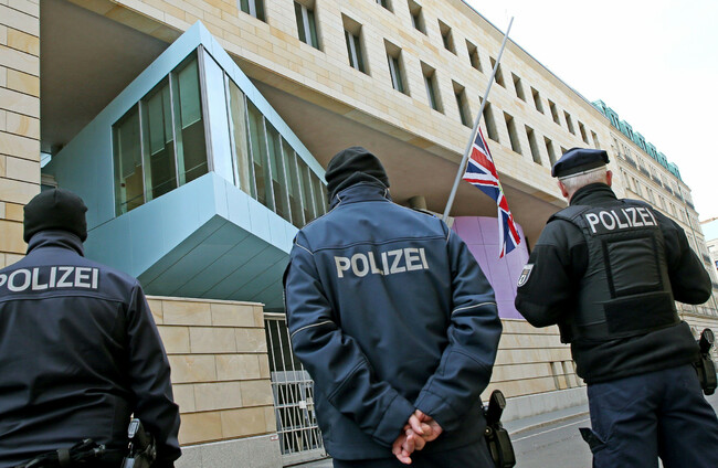 A stock image of German Police outside the British embassy. Alamy Stock Photo
