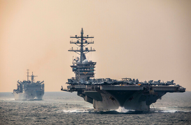 A US navy aircraft carrier in the Red Sea in December 2023. The US and UK have been carrying out strikes in Yemen in response to the Houthi attacks. Alamy Stock Photo