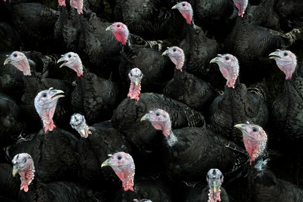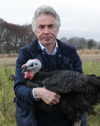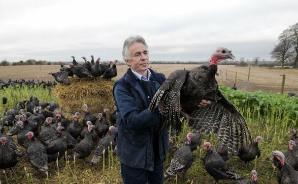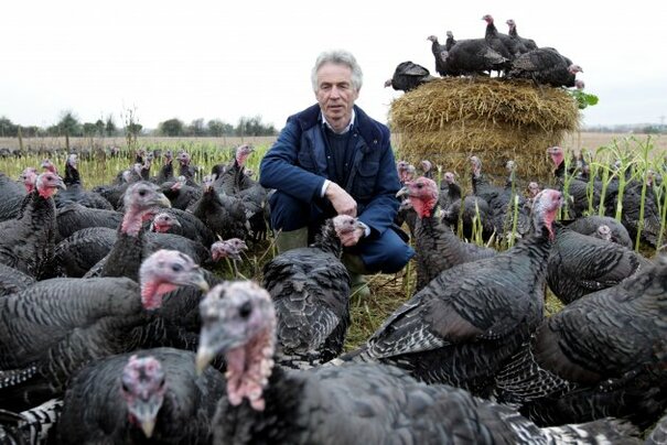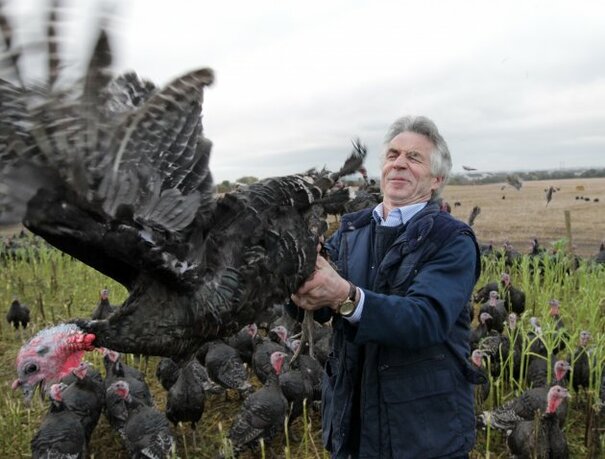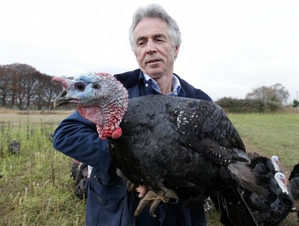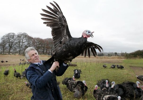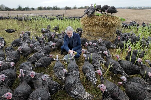 Here is McEvoy with the turkeys on his farm today – who knew turkeys were so… interesting looking?