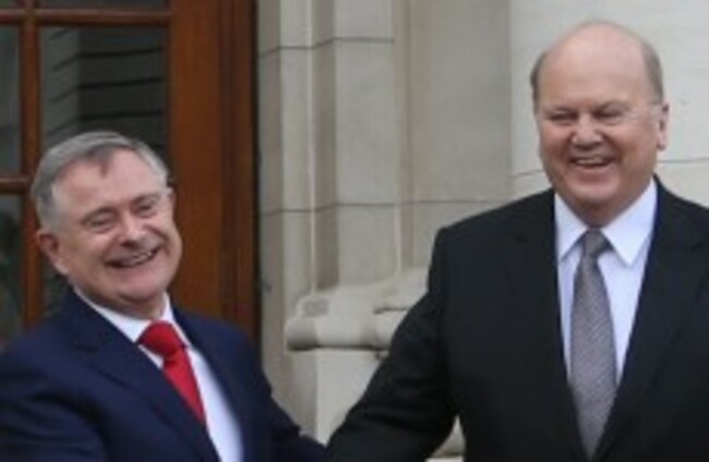 Ministers Howlin and Noonan outside Government Buildings yesterday RollingNews.ie
