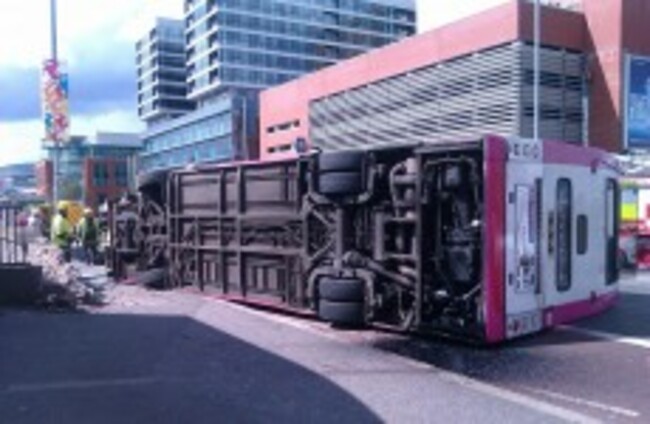 MORE THAN 30 people have been injured after a double-decker bus overturned near Central Station in Belfast this afternoon.