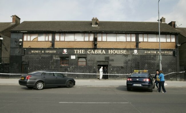 The scene outside The Cabra House pub in Dublin this morning. Pic: Eamonn Farrell/Photocall Ireland
