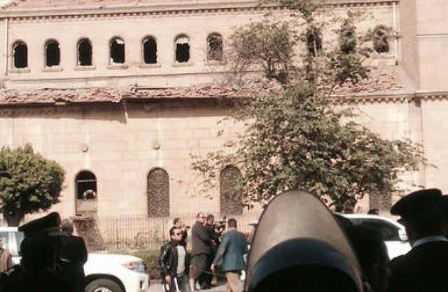 Damage is seen to the exterior of St. Mark Cathedral in central Cairo, following a bomb blast AP