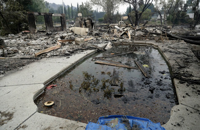 Debris and charred items litter a wildfire-ravaged home Marcio Jose Sanchez