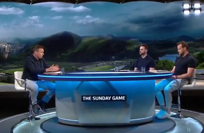 Damian Lawlor in studio with Neil McManus and Jackie Tyrrell. The Sunday Game X