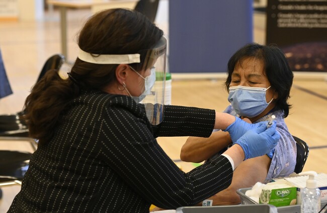Anita Quidangen, a personal support worker who carried out her job throughout a Covid-19 outbreak at a nursing home in Toronto, got the first dose in Ontario.