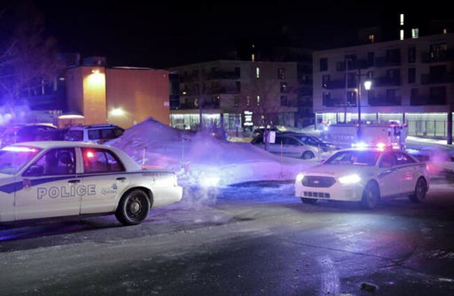 Police survey the scene following the shooting in Quebec City, Canada. Francis Vachon/The Canadian Press via AP