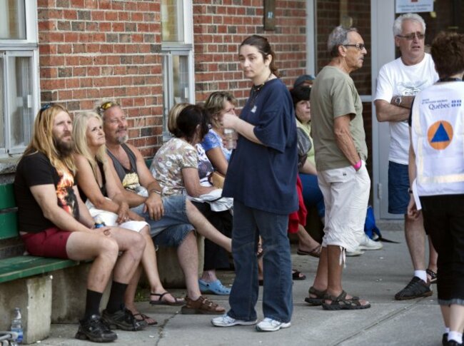Residents wait outside an emergency centre for news of family and friends following the train derailment. (AP Photo/The Canadian Press, Paul Chiasson)