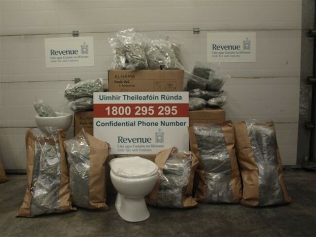 The cannabis, which originated in Spain, was concealed in a shipment of toilets, and was discovered following the search of a yard in Duleek. The 24-year-old Irish man was arrested and will appear in court today.