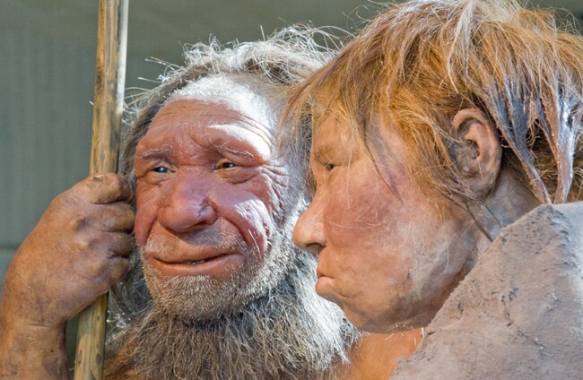 Reconstructions of a Neanderthal man and woman. AP/PA Images