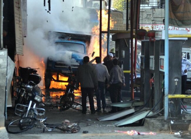 Today’s bombs were detonated in a parking lot near a cluster of commercial buildings as groups of laborers and employees were arriving for work, killing 34 and injuring 83 people, SANA said.
