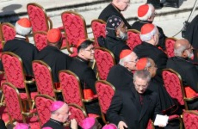 Cardinal Luis Antonio Tagle of the Philippines, centre, sits amongst other cardinals as they attend Pope Benedict XVI's last general audience. Luca Bruno/AP