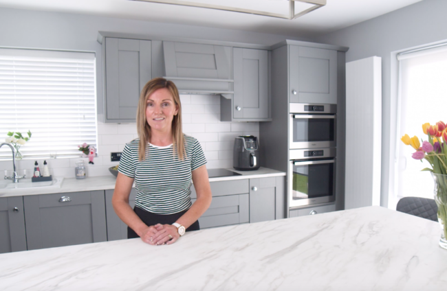 Vicki met with Cash & Carry Kitchens designer Dee Morrissey, who set about bringing her dream kitchen to life. Dee created a digital 3D preview of the Augusta kitchen in Dust Grey, allowing Vicki to see exactly how it would look in terms of size and design.