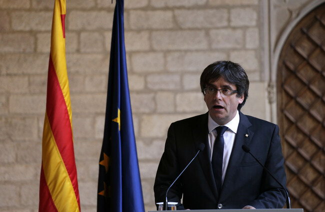 Puigdemont making the statement today Emilio Morenatti AP/PA Images