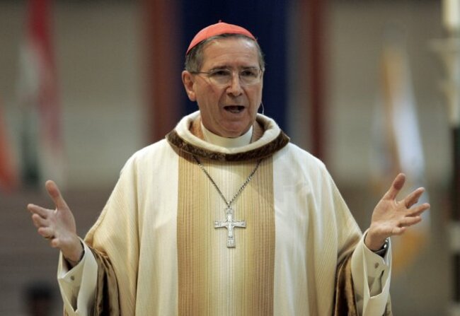 In this Sept. 22, 2007 file photo, Cardinal Roger Mahony speaks during an annual multi-ethnic migration Mass at the Cathedral of Our Lady of the Angels in Los Angeles. (AP Photo/Reed Saxon)