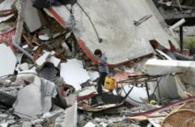 A Palestinian boy walks through the rubble of a destroyed building following an Israeli air strike in Jabaliya on Monday AP Photo/Adel Hana