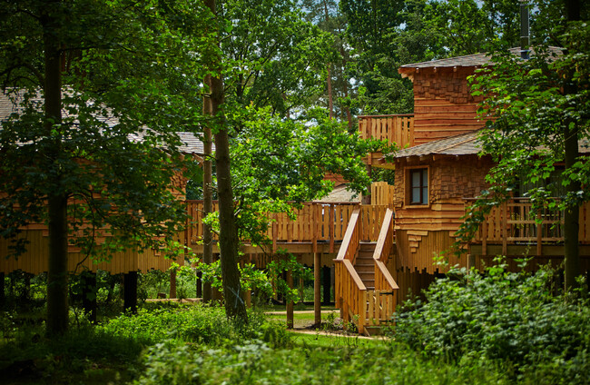 The exterior of a Center Parcs treehouse Center Parcs