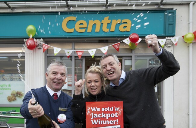Centra staff celebrate selling a winning lottery ticket. Eamonn Farrell/RollingNews.ie