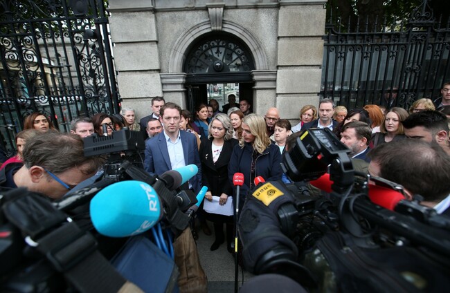 Stephen Teap, Lorraine Walsh and Vicky Phelan surrounded by some of the 221 cervical cancer patients who received an incorrect smear test. Sam Boal via RollingNews.ie