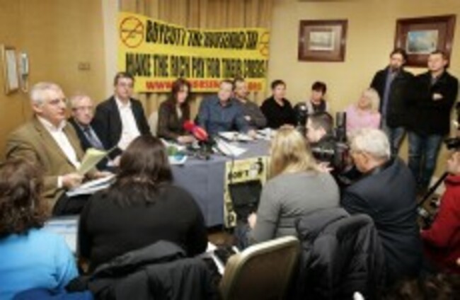 TDs under the Campaign Against Household and Water Taxes banner at a press conference in Dublin today. Mark Stedman/Photocall Ireland