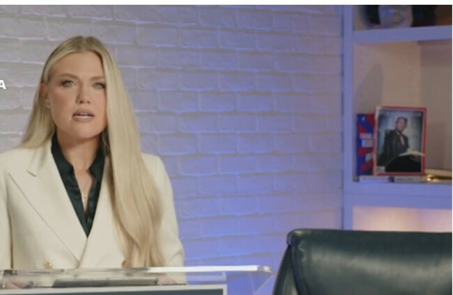 Erika Kirk in the video, recorded in her late husband's podcast studio.