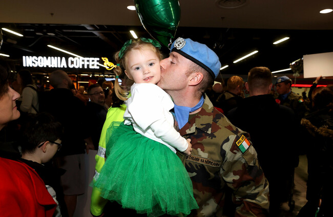 There was a huge cheer as the doors opened to reveal the first of the Irish Defence Forces walking through to be reunited with their loved ones, and tears as parents, spouses and children got long-awaited hugs.