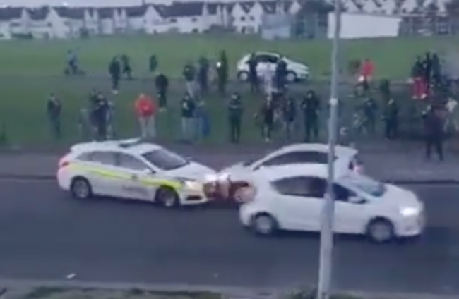The moment a car rams a garda vehicle in Cherry Orchard last night. Social Media Video