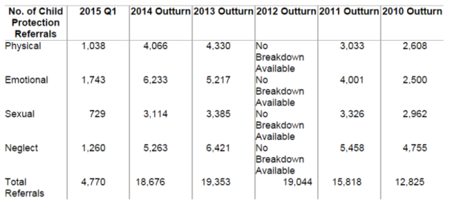 IN IRELAND OVER the last three years, there was an average of 19,000 child protection referrals due to abuse concerns.