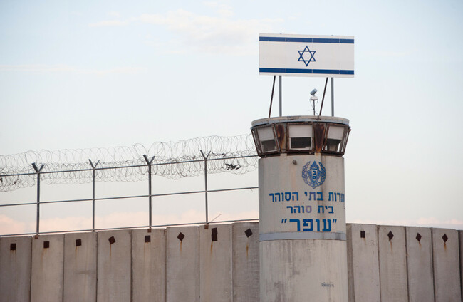 A watchtower at Israel's Ofer military prison stands on occupied Palestinian territory in the West Bank. Alamy Stock Photo