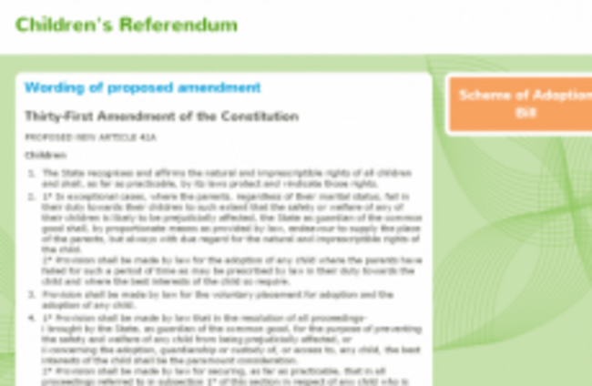The site as it looked yesterday evening before it was taken down completely www.childrensreferendum.ie on 8 November 2011