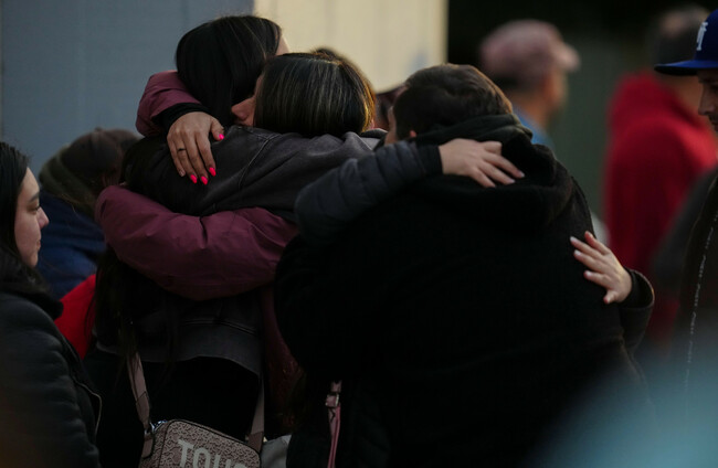 Relatives of a missing miner embrace in front of the offices of Codelco, operators of El Teniente copper mine. Alamy Stock Photo