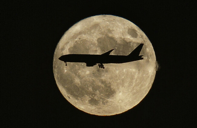 A plane flies past the 'supermoon' in Beijing, China. VCG/Getty Images